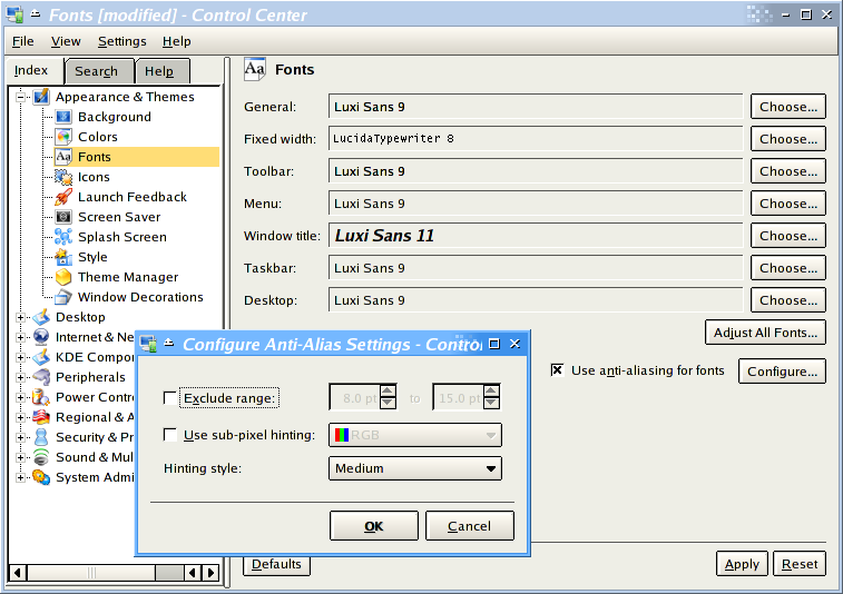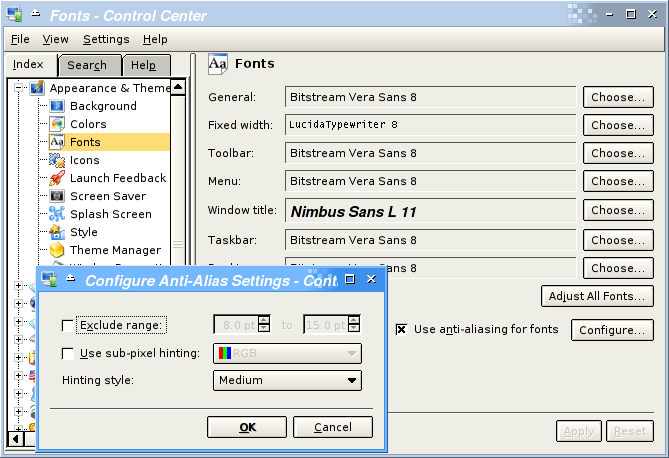The font subsystem on Linux evolved a lot in the last years, from an old naming, handling and option of fonts, to the support of True Type, Bistream Vera, etc. As of release time of Fedora Core 2, components like Xft, FreeType and FontConfig, and higher level software usage of them has stabilized and is now considered mature. But Linux still has issues with optimal font rendering, most of them related to software patents that we describe in Section 2 below.