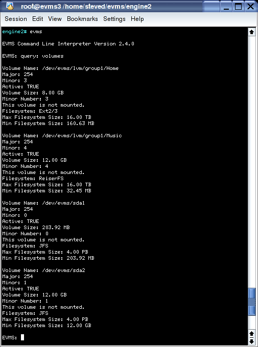 EVMS Volumes contain EVMS native metadata and can support all EVMS features. /dev/evms/my_volume would be an example of an EVMS Volume.